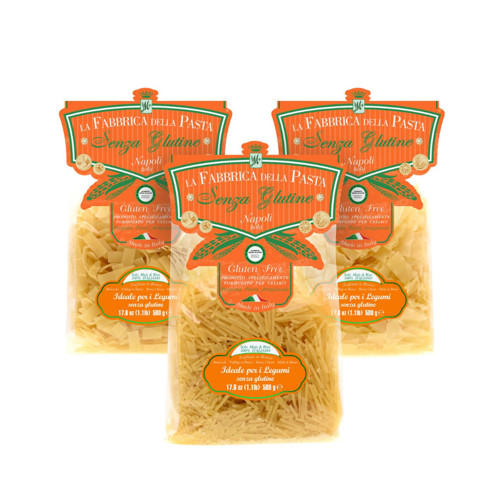 Perfetto per esaltare piatti a base di legumi e zuppe. Realizzato con farina di mais e riso accuratamente selezionata e acqua pura di Gragnano, per un sapore autentico e ottima tenuta in cottura. Il formato può variare in base alla disponibilità.