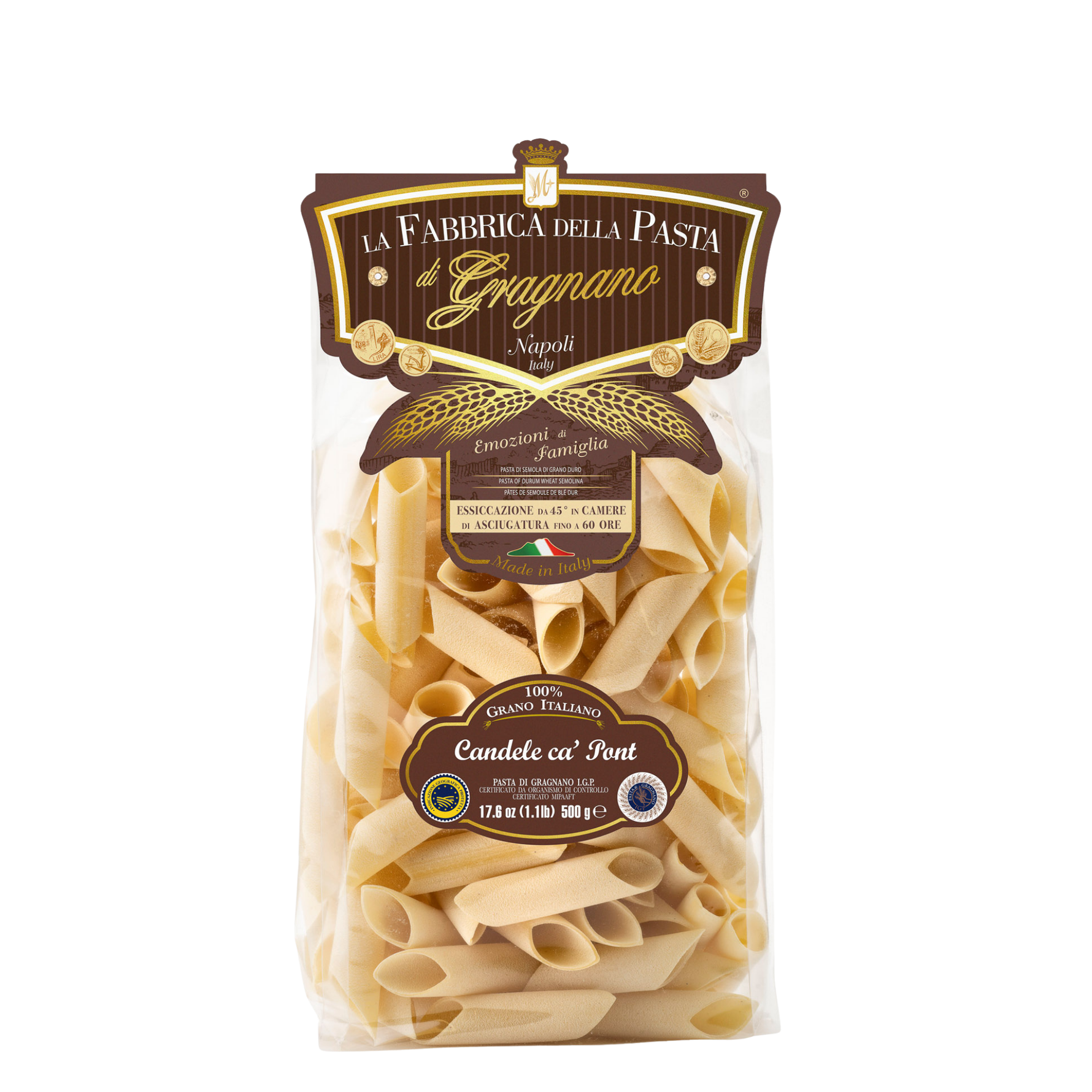 Ispirato alle antiche candele napoletane, ma con la punta. Ideali per essere cucinate in piatti al forno o conditi con sughi corposi.