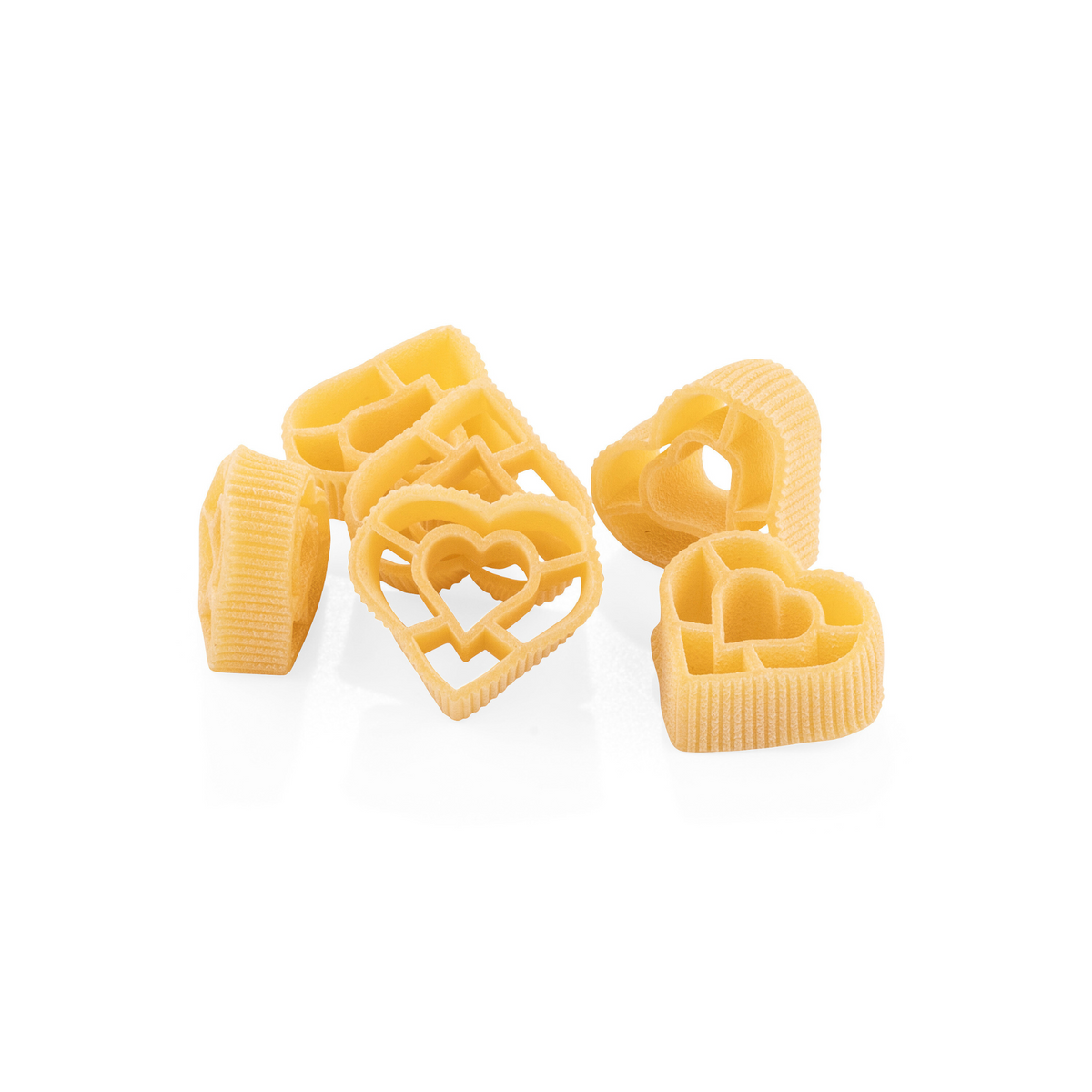 Prezzo unitario / perUn formato di pasta romantico e originale, realizzato con semola di grano duro 100% italiano e lavorati secondo la tradizione di Gragnano. Perfetti per piatti eleganti e ricchi di gusto, sono il simbolo della passione per la cucina e della qualità italiana.