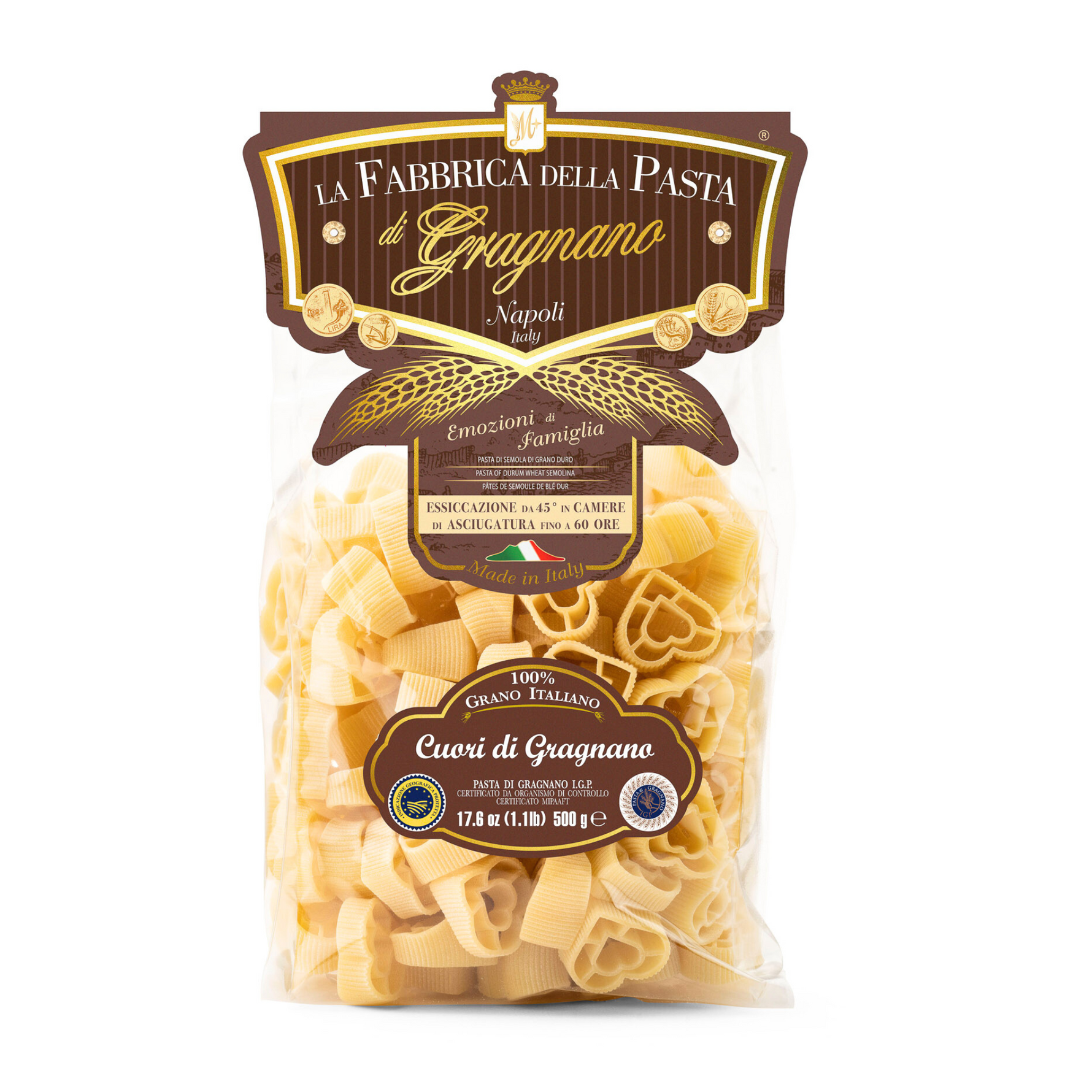 Un formato di pasta romantico e originale, realizzato con semola di grano duro 100% italiano e lavorati secondo la tradizione di Gragnano. Perfetti per piatti eleganti e ricchi di gusto, sono il simbolo della passione per la cucina e della qualità italiana.