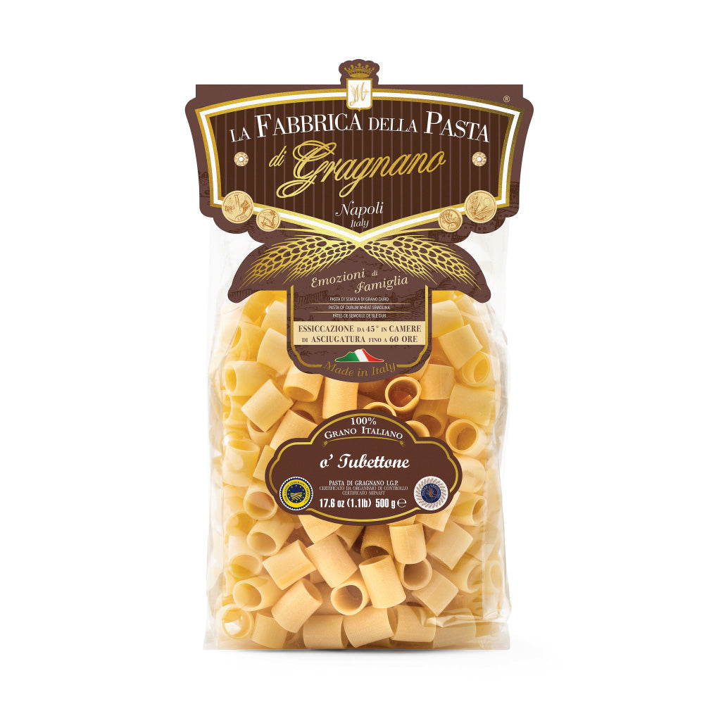 Un formato cilindrico, tipica della trafilatura al bronzo, garantisce una perfetta tenuta al sugo, esaltando ogni ricetta. Perfetti per realizzare piatti ricchi come pasticci da forno, si abbinano splendidamente a ragù corposi o sughi al pomodoro.