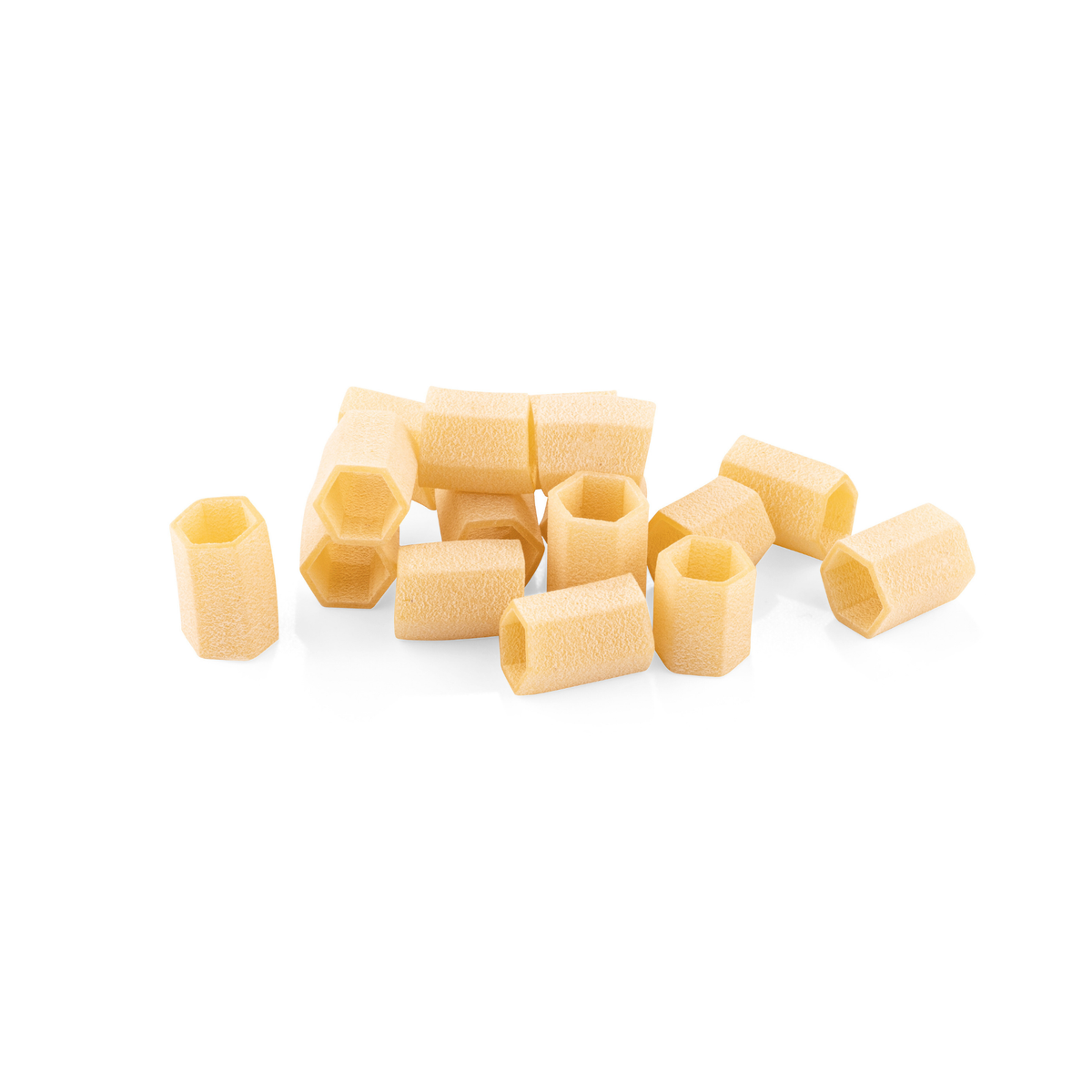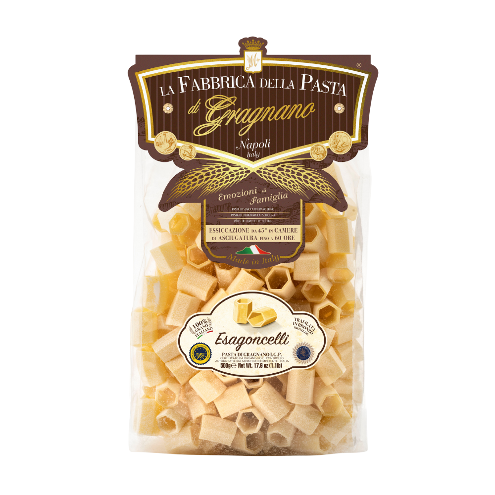 L’incontro perfetto tra tradizione e innovazione: un formato compatto e originale che, grazie alla sua forma esagonale, cattura il condimento in ogni angolo. Ideale per valorizzare ricette cremose o ricche di sapore, trasformano ogni piatto in un’esplosione di gusto.