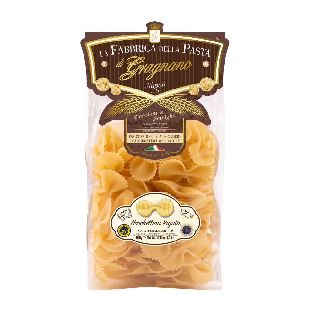 A shape that enchants with its double consistency: smooth on one side and ridged on the other, to wrap every sauce in a perfect embrace.