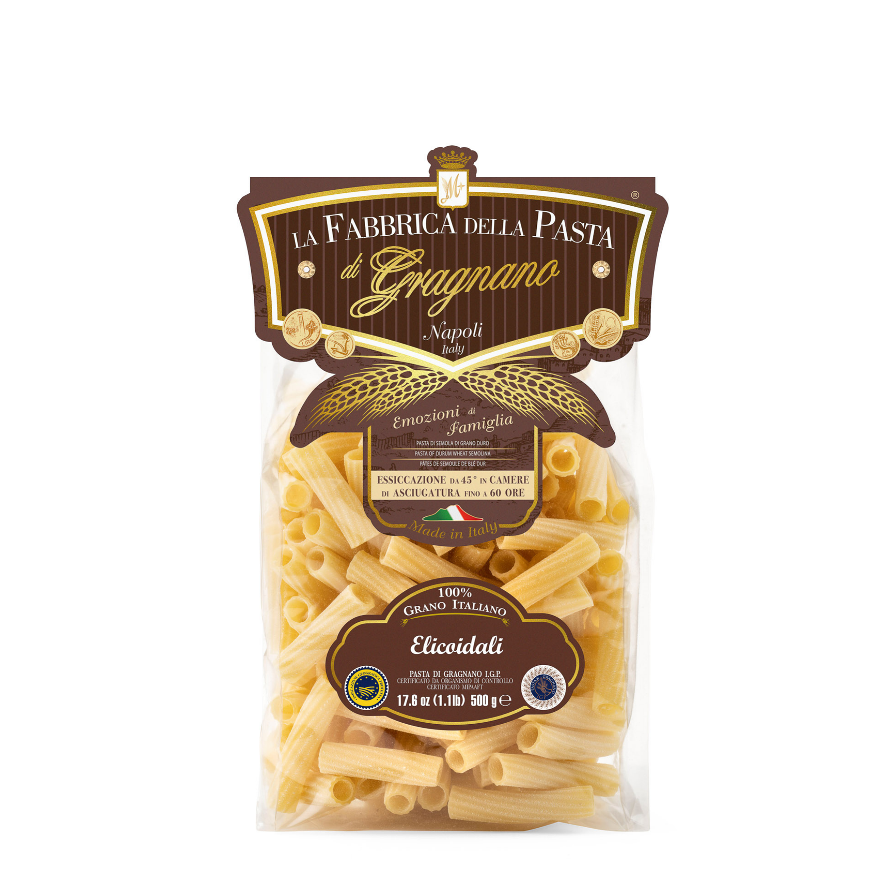 Un formato rigato, avvolto ad elica, che trattiene perfettamente il condimento grazie alle loro scanalature. Ideali per una vasta gamma di ricette, esaltano ogni piatto con la loro consistenza ruvida e il sapore autentico della pasta di Gragnano.